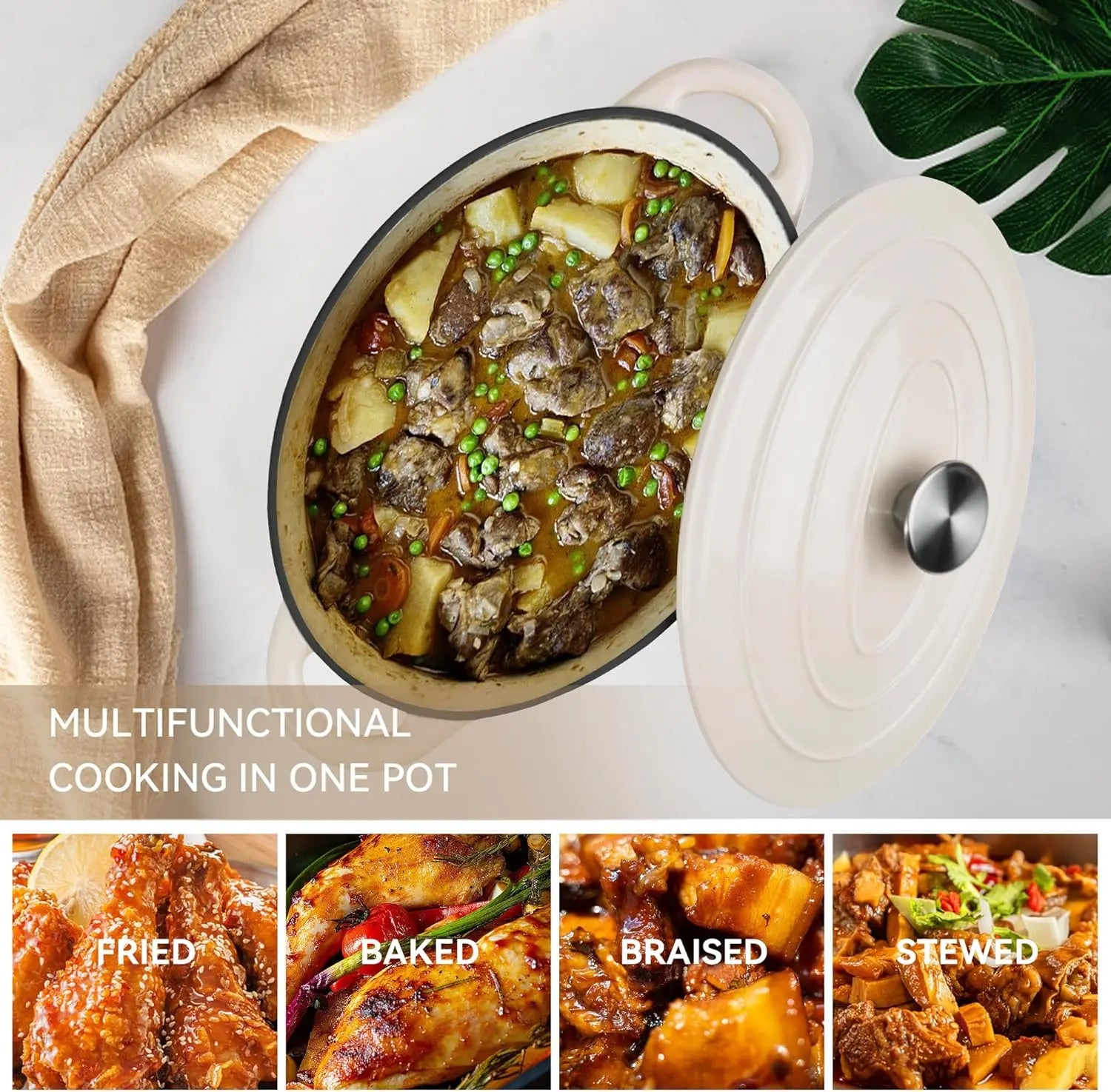 Ideal for family-sized meals, perfect for soups, stews, casseroles, and bread baking.
