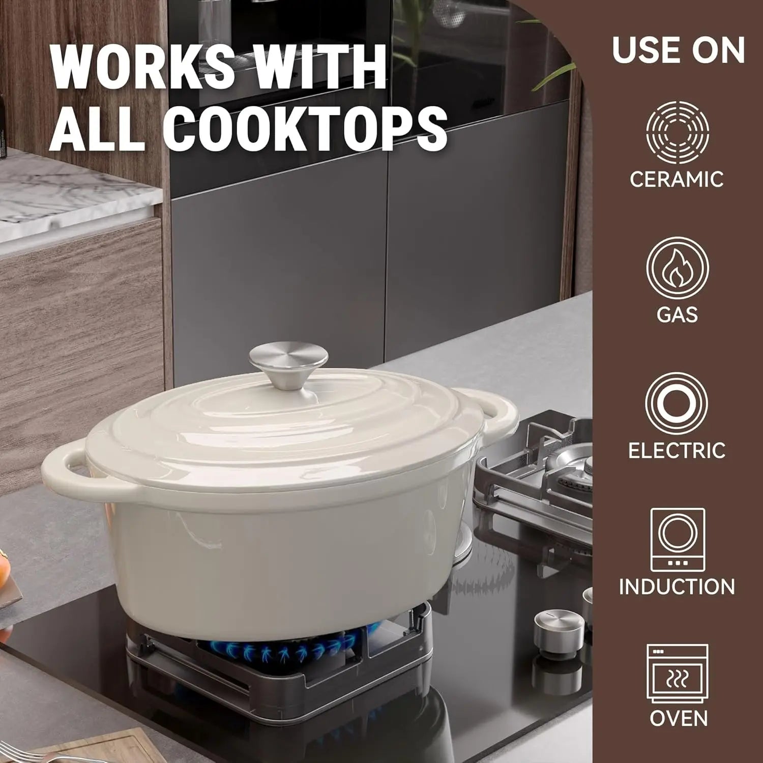 Safe for use on gas, electric, ceramic, induction stovetops, and in ovens up to 500°F (260°C).
