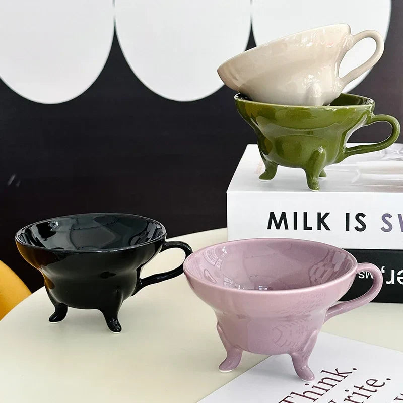 Sip your favorite drinks in style with this Vintage Solid Color Ceramic Coffee Cup Creative Italian Tripod Mug from Kitchen Groups, designed with a unique tripod base for a touch of European elegance. Perfect for espresso, cappuccino, afternoon tea, or desserts, this cup adds creativity and charm to your tableware collection.