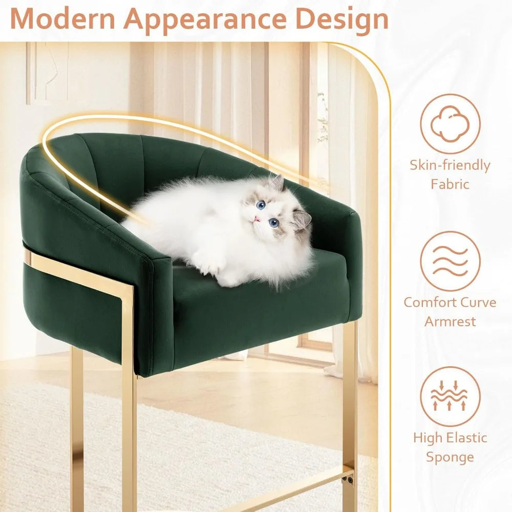 Bring modern luxury to your kitchen with this Set of 2 Modern Barrel Stools with Shell Back Gold Velvet Bar Stools from Kitchen Groups, featuring a barrel-style design with a chic shell backrest. Upholstered in plush gold velvet and supported by a durable frame, these stools combine comfort and elegance, making them perfect for kitchen islands, breakfast counters, or home bars.