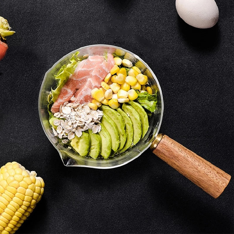 Glass Pot With Wooden Handle Transparent Cooking Kitchen Cookware
