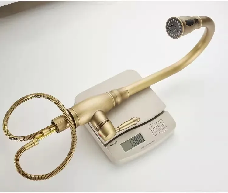 1* Pull-Out Rotating Spout Water Mixer Tap Antique Brass Kitchen Faucet