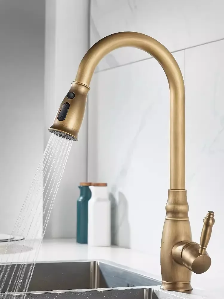 Upgrade your kitchen with this Pull-Out Rotating Spout Water Mixer Tap Antique Brass Kitchen Faucet from Kitchen Groups, designed to blend classic elegance with modern practicality. Featuring a pull-out rotating spout, this faucet offers flexibility and precision, making dishwashing, rinsing, and filling pots effortless. Made from premium solid brass, it ensures durability, corrosion resistance, and a long-lasting antique finish.