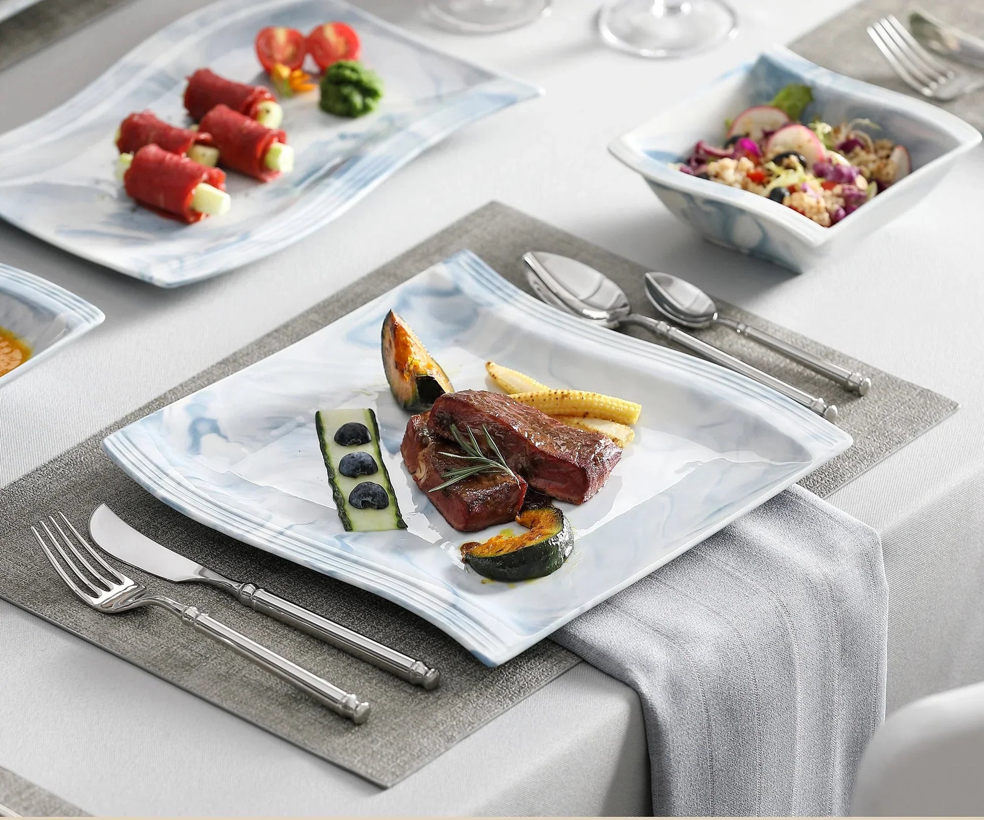 26pcs Nordic Marble Ceramic Tableware with Bowl Plate Soup Set
