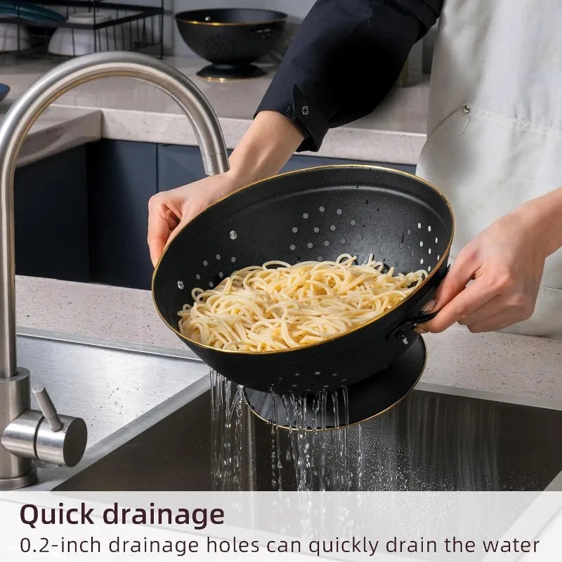 Features:- 2 Different Sizes : kitchen colander set include 3-Quart and 5-Quart, it's available for daily and party use, and it could be a good decoration as well.