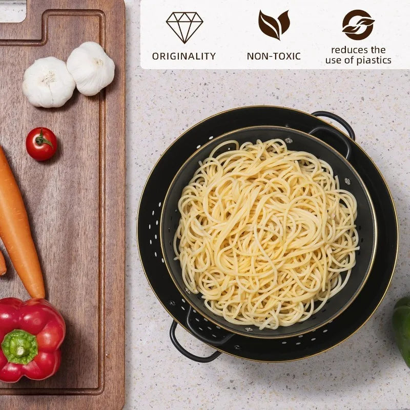 Metal Colander Strainer Baskets with Handles and Solid Base Set of 2
