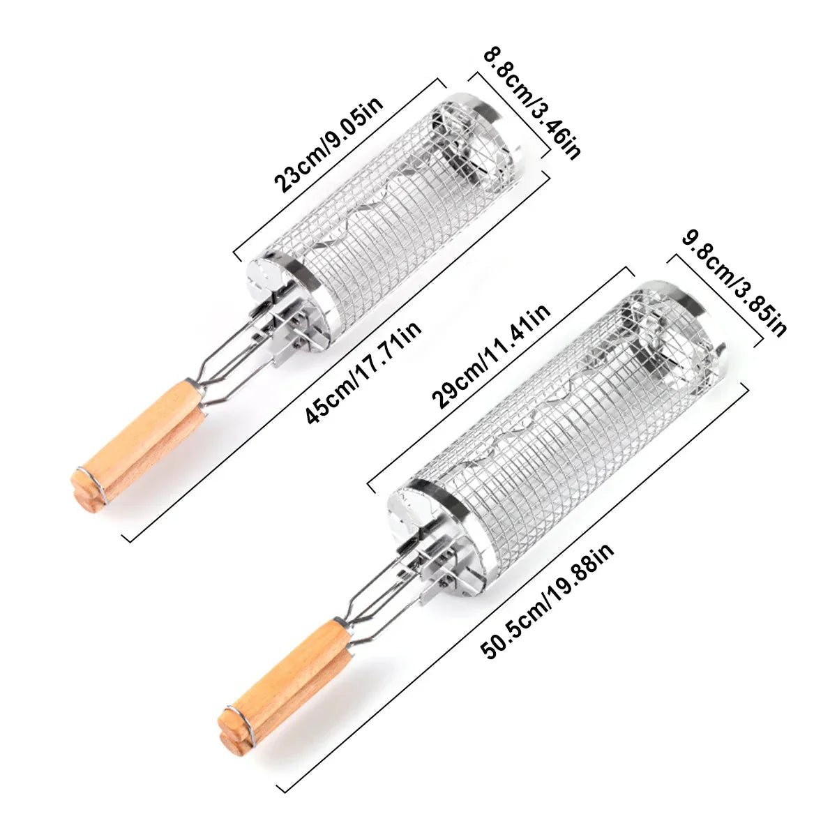 Portable Stainless Steel Rolling Grilling Basket BBQ Grill Accessory