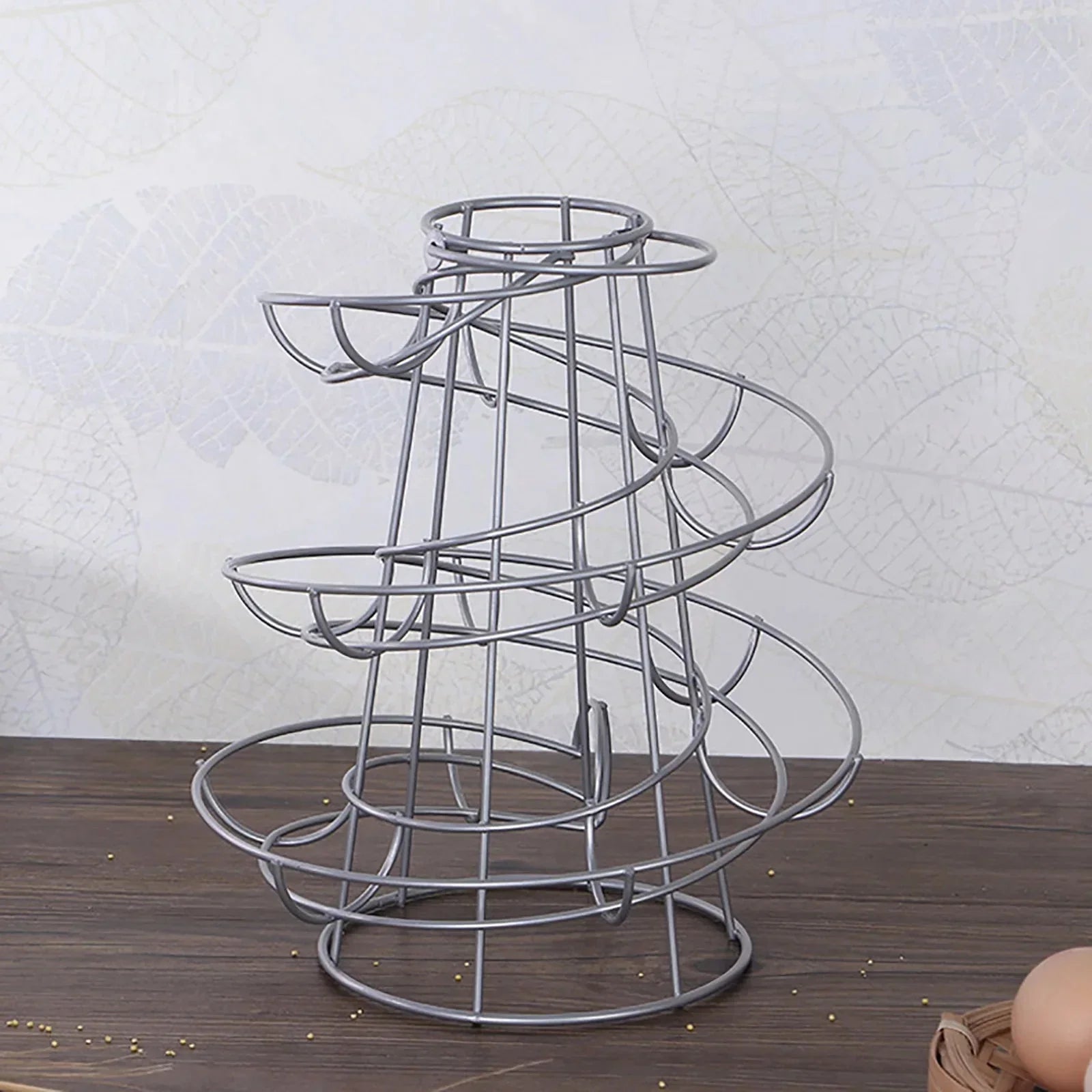 Package Includes:1*Spiral Egg Rack Egg Stand Multi-functional Metal Spiral Egg Basket