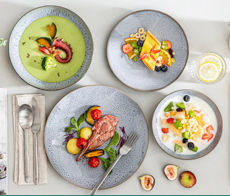 UNIQUE DESIGN -The concave-convex embryo base presents a fine glaze color with undulations. The irregular edge is also the highlight of this dinnerware.