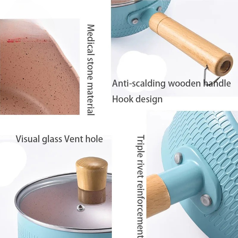 1*Medical Stone Saucepan With Lid Kitchen Nonstick Pan Pots Cookware
